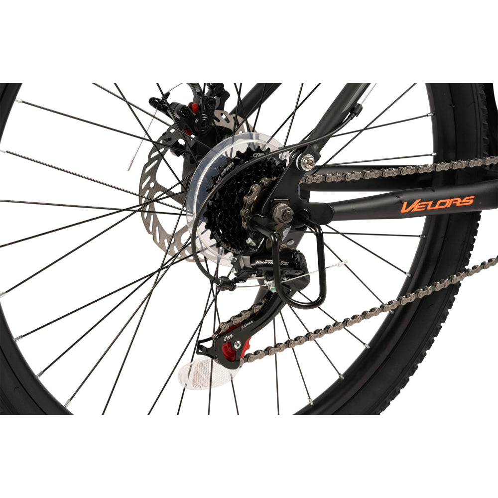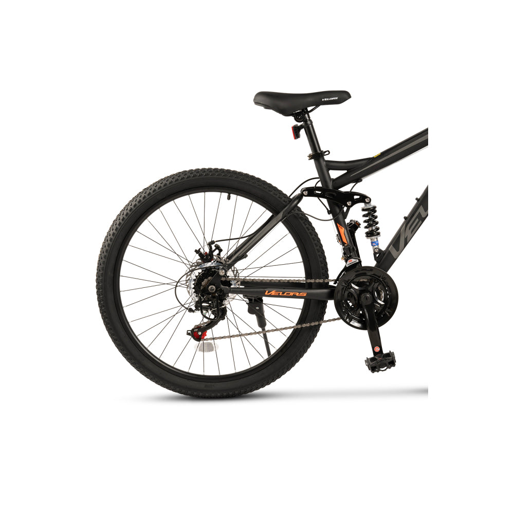 Professionelle MTB-Ausstattung:26 Zoll doppelwandige Alufelgen mit MTB-Reifen (26x2.125). Dreifach-Kurbelgarnitur (24/34/42T) für jedes Terrain.