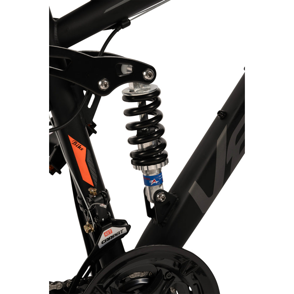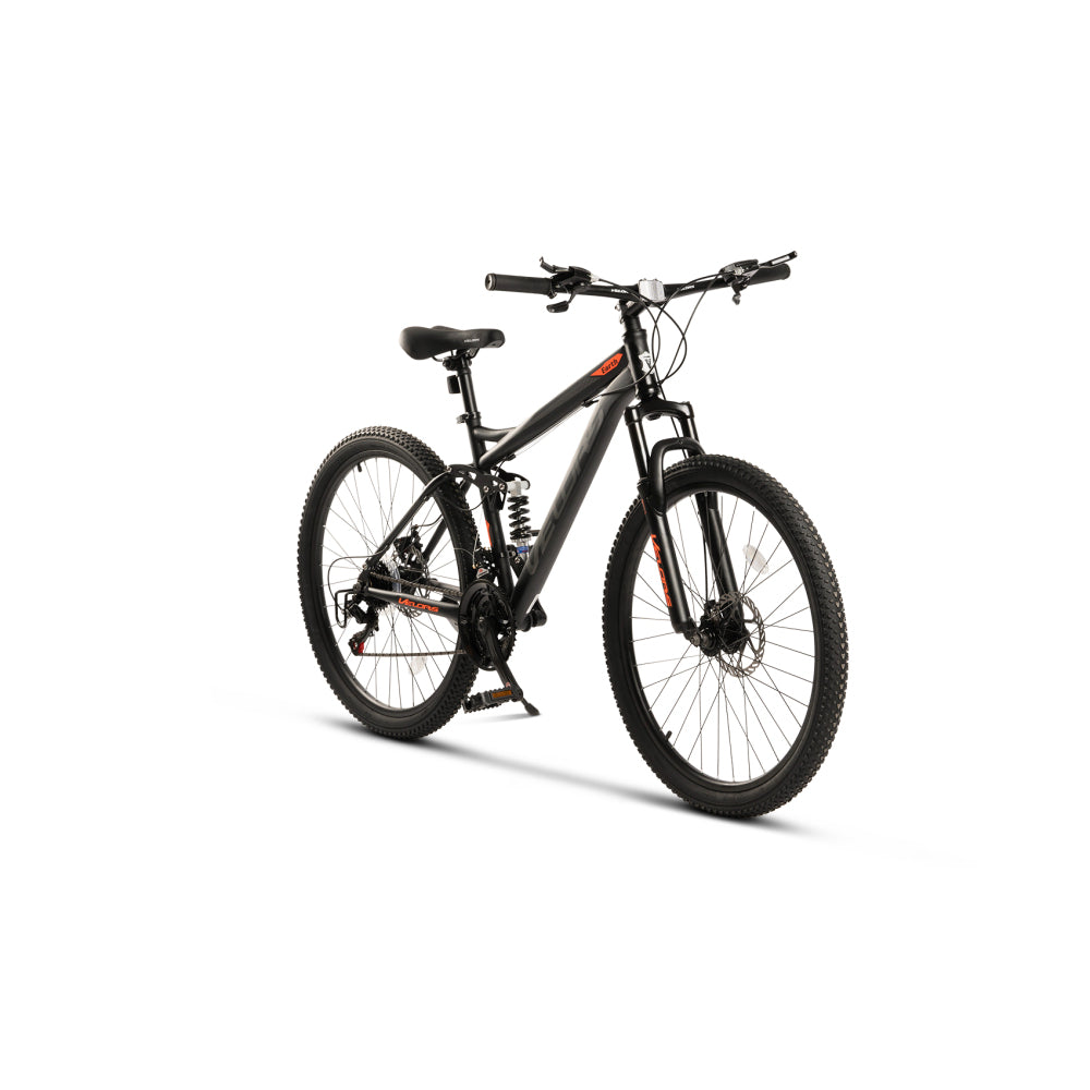 Professioneller Fully-Federrahmen:Elektrostatisch lackierter Stahl-Fully-Rahmen (431mm) mit 75mm Federgabel. Spezielle MTB-Geometrie für anspruchsvolles Gelände.